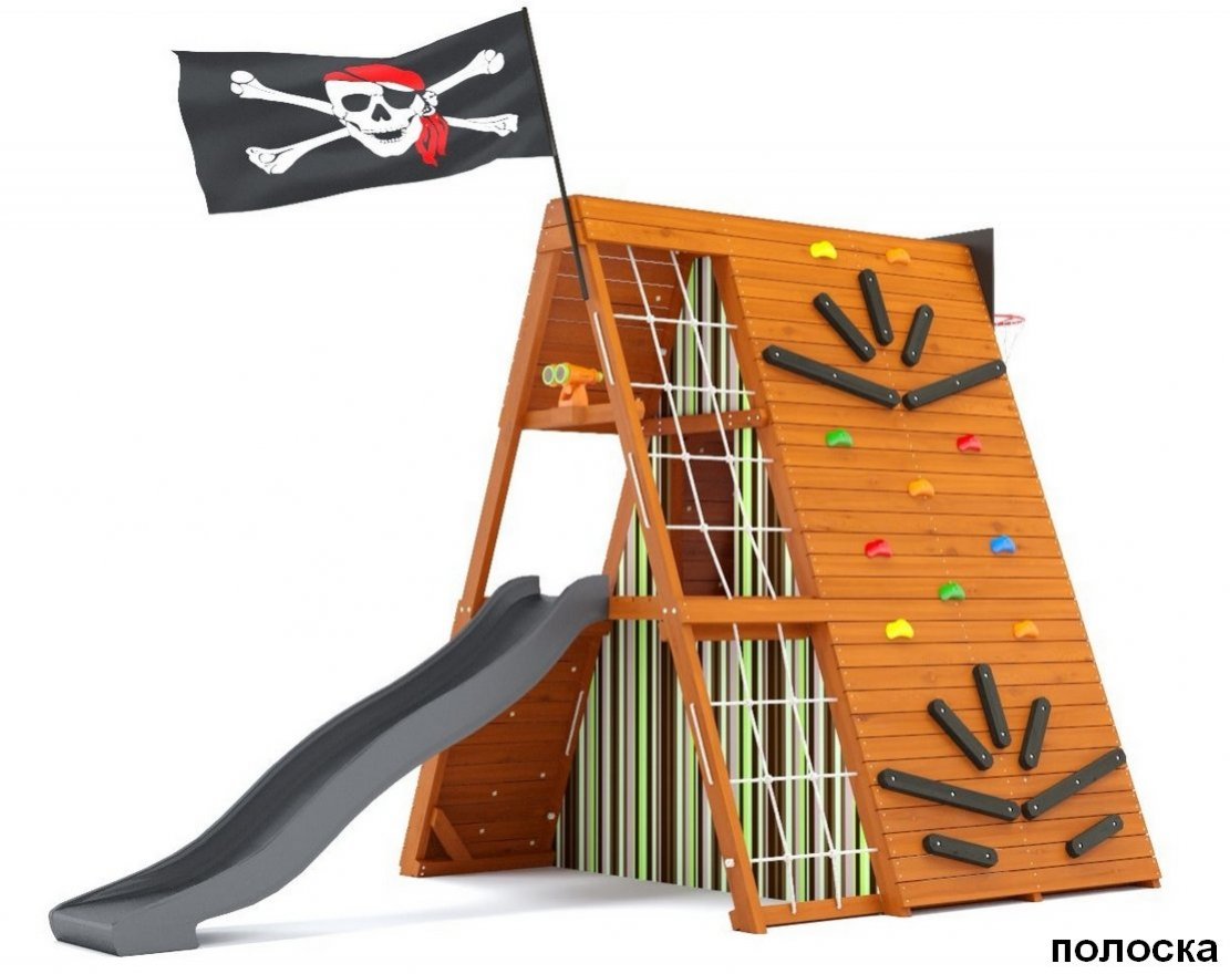 В домике есть всё, чтобы создать собственный мир игры и приключений: многосекционный скалодром с пластиковыми и деревянными зацепами, гладиаторские разноуровневые сетки, меловая доска для рисования и творчества, бинокль и даже баскетбольное кольцо со щитом. Внутренний лаз с выходом на платформу и внутренняя лестница - это ещё больше возможностей для детского творчества и активного отдыха.