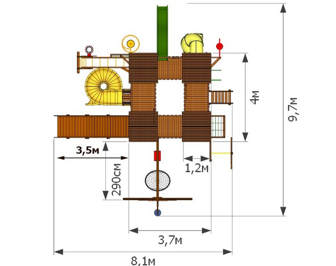 - Длина качельной балки - 290 см