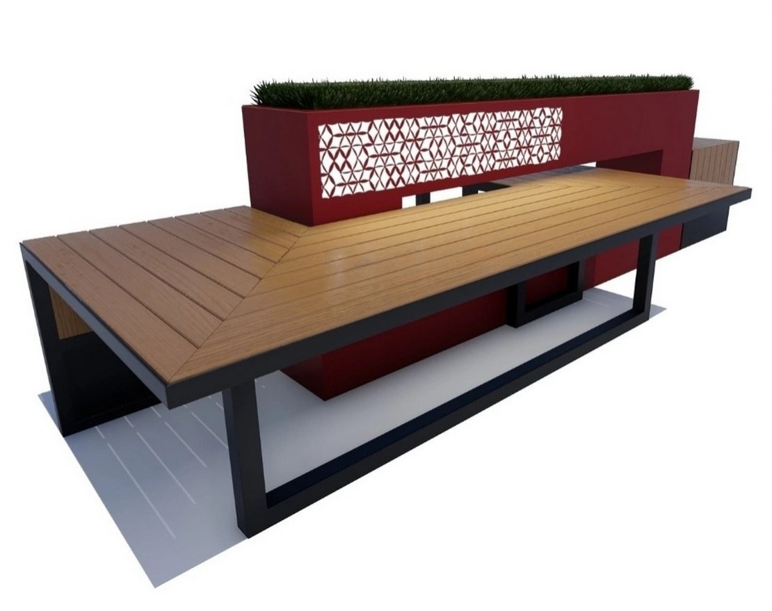Модуль представляет собой просторную скамью, дополненную контейнером для зеленых насаждений. Возможность посидеть, передохнуть, понаблюдать за птицами, пообщаться с друзьями оценят жители и гости города. Решение купить скамейки для обустройства улиц принесет ощутимую пользу владельцам кафе, пиццерий, кондитерских: подобные места стимулируют человеческий трафик и увеличивают посещаемость заведений.