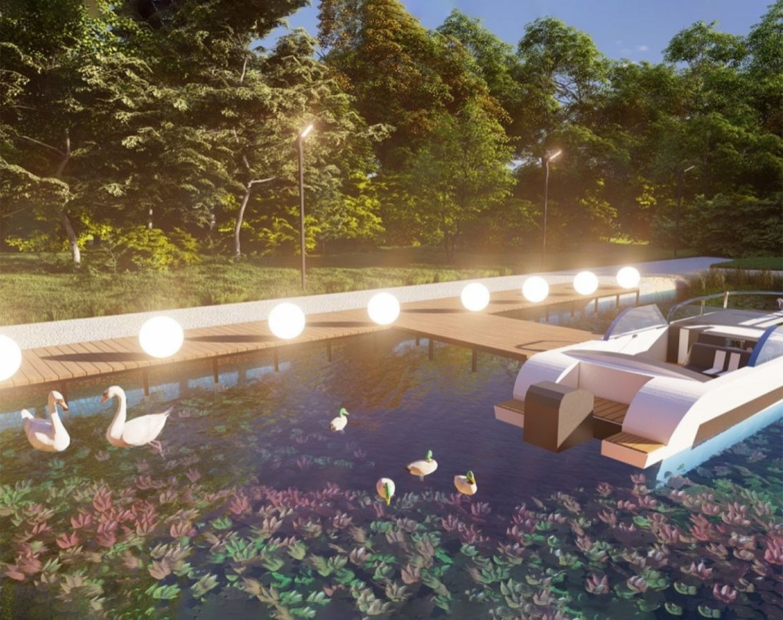 Пирс будет укреплен сваями, что обеспечит его стабильность и прочность.